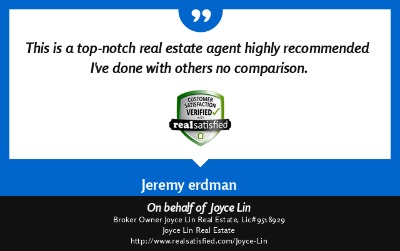 "Working with Joyce Lin Real Estate has truly been a blessing/gift to me. I met Joyce when I first bought my condo in September 2011, and she represented me as my Buyers Agent. Upon first meeting her, I thought to myself, What a sincere and genuine person this woman is. At